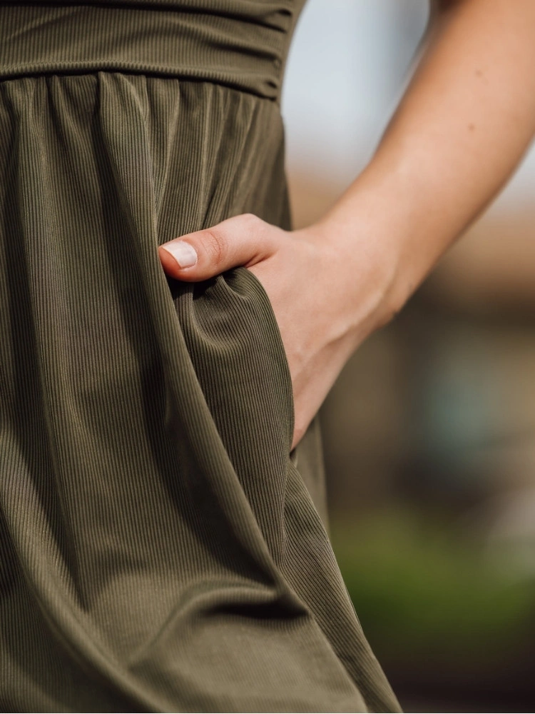 • Pleatový pás – zdůrazňuje pas a přidává texturu i vizuální zajímavost