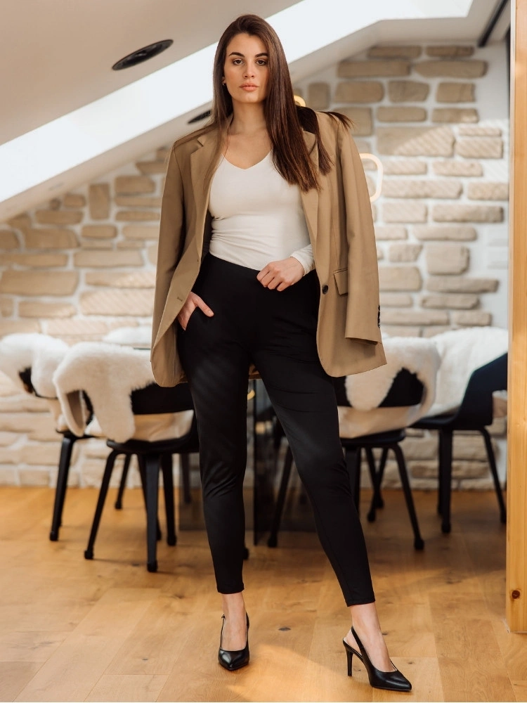 - Szűkített fazon, amely előnyösen formálja és optikailag nyújtja a lábakat