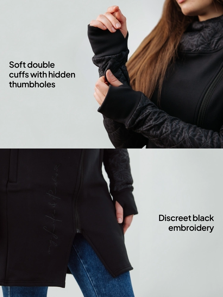 • Soft double cuffs with hidden thumb-hole