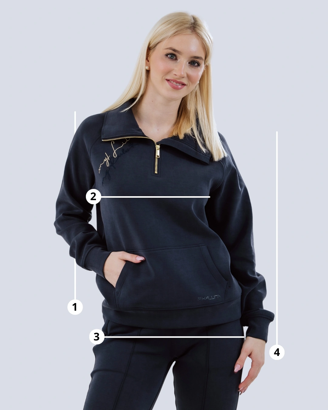 • Eleganten polovični zadrgni izrez z razkošnimi zlatimi ali srebrnimi kovinskimi detajli za prilagodljivo stiliranje