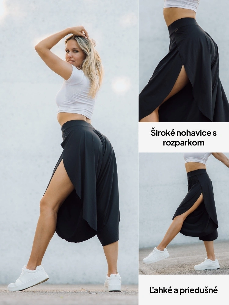 • Nohavice so širokými nohavicami a rozparkom
